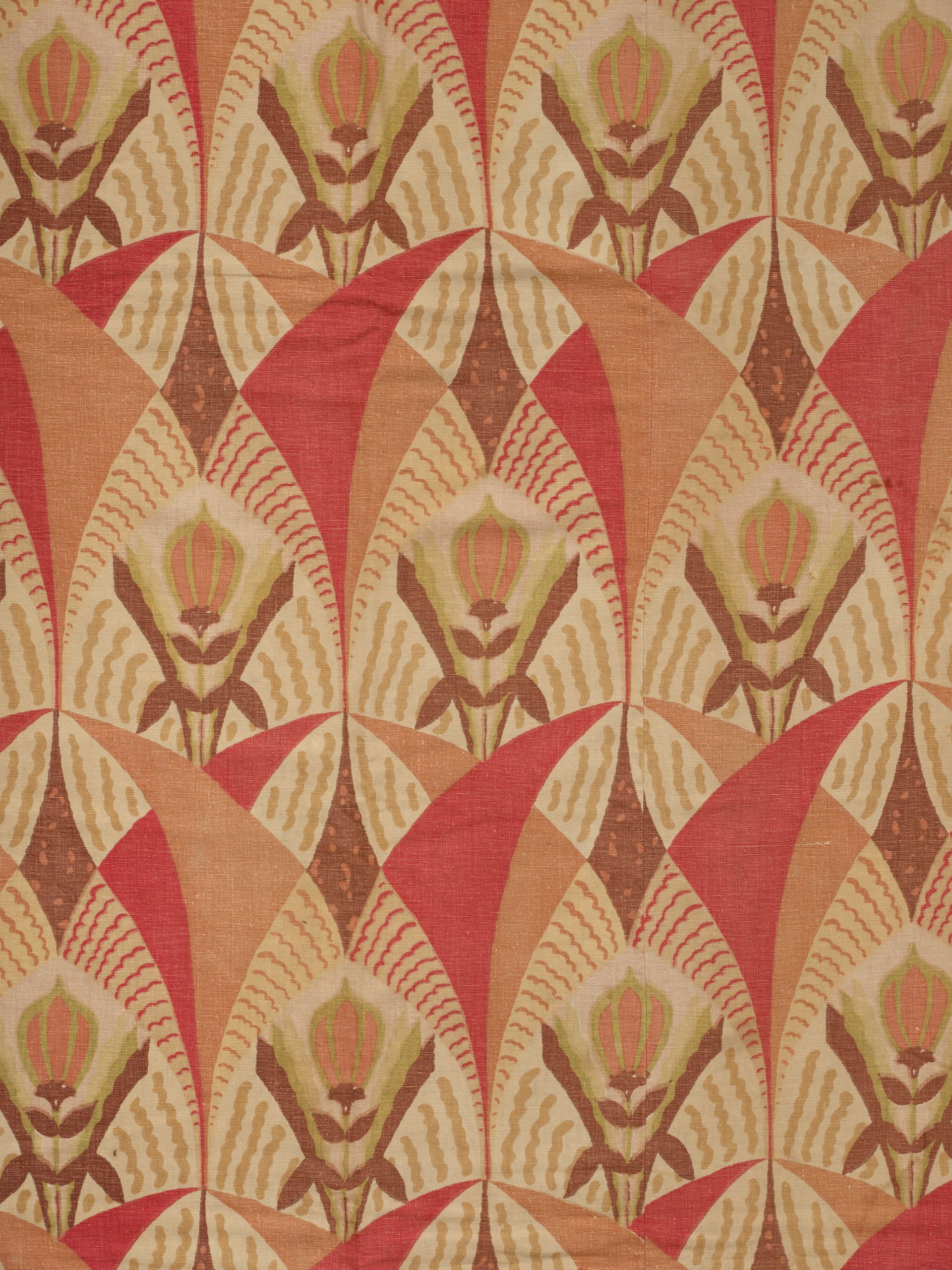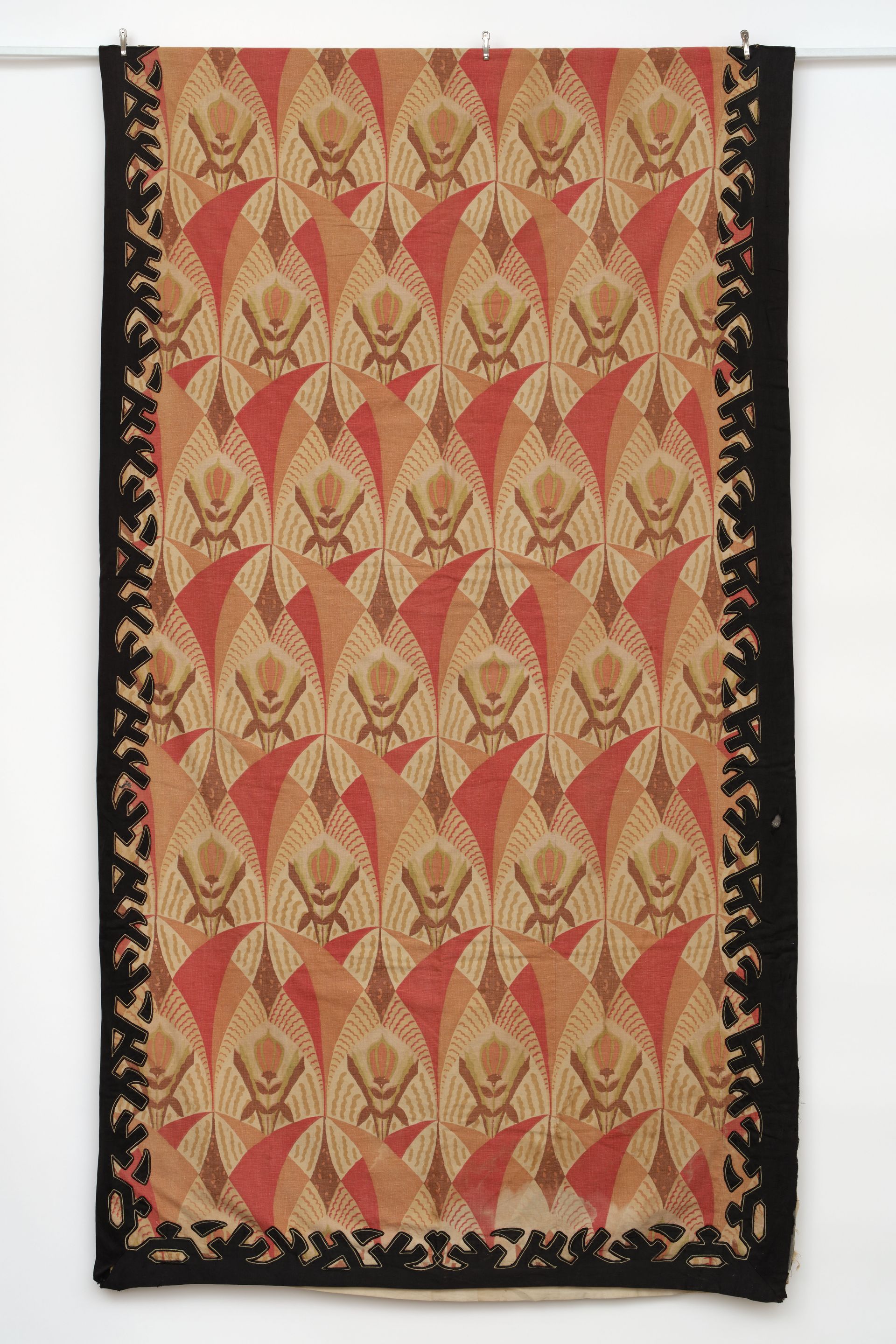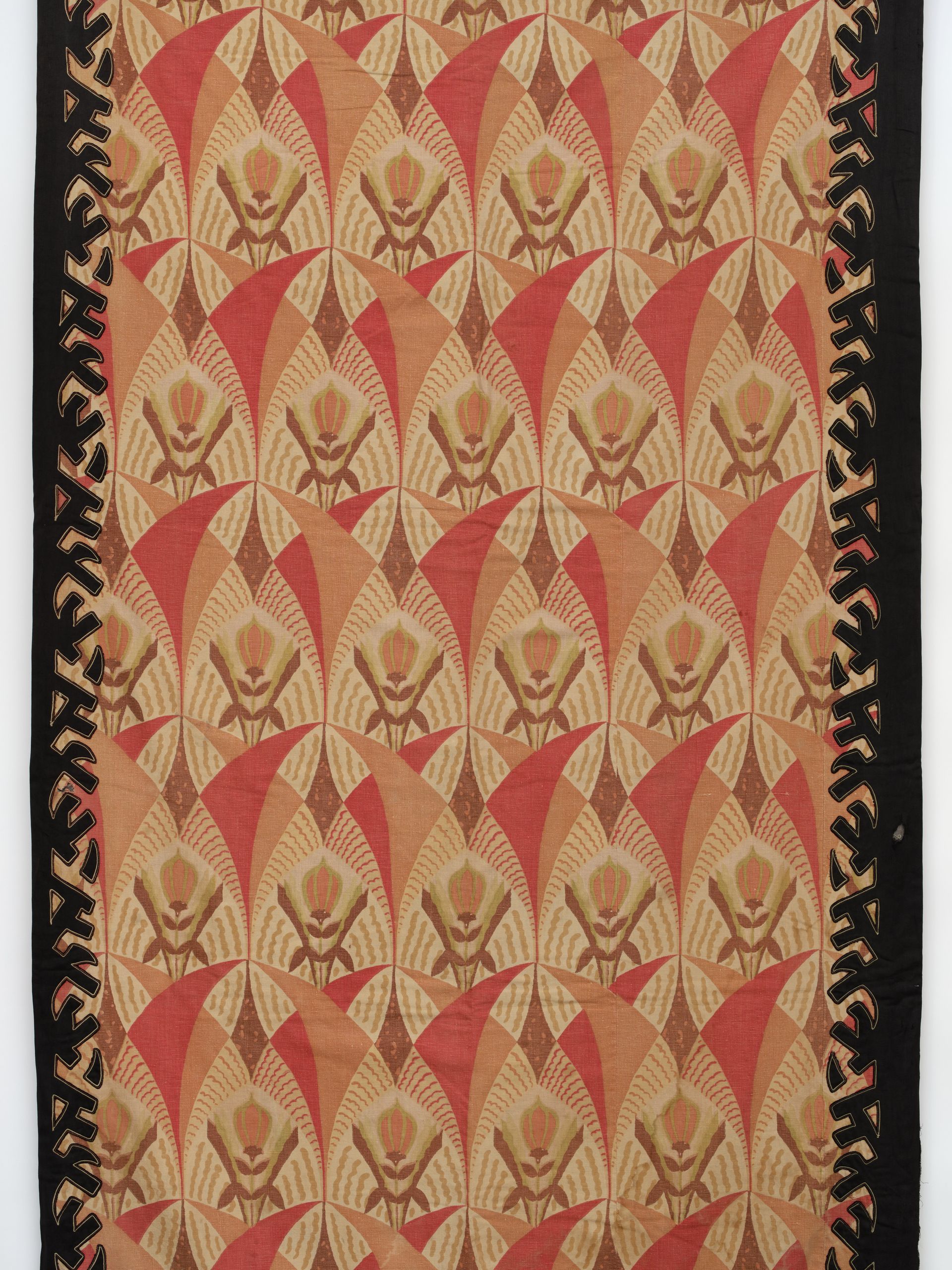 Panel. Woven cotton. Printed with an abstract geometric floral and fan repeat, with contrasting applique border. Attributed to France. C.1930’s 7.5’ x 4’